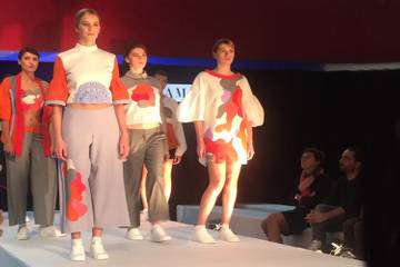 Roubaix-based fashion school Esmod has organised a competition in collaboration with fashion brand Camaïeu, which offered 40 students the chance to customize and style looks for the French brand. The students, who were all in their sophomore year, were divided in eight groups and were given one month to come up with a collection which was later presented during Camaïeu´s ´30-minute Fashion Week´ in honour of the brand´s 30th anniversary.The fashion brand presents itself as a ´colourful´, ´feminine´ and ´happy´ brand, which was clearly reflected in the fashion show which featured dresses, trousers and blouses in colours such as white, orange and lavender.