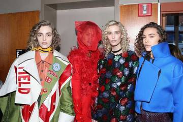 Standout ready-to-wear came from Taylor Ormond who interpreted bustles using pillows layered under white organza with a Louise Bourgeois sensibility and embellished them with meandering pastel needlework and lace applique. Jinwoo Hong’s coat dress in a burnished earth-toned print won the Sophie Theallet Critic Award.