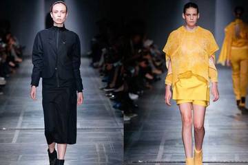 The show opened with strong dark colors, signifying the hardness and aggression of hooligans imagined, and ended with soft and bright colors such as gray, nude and white, referring to the powerful muse of Individuals. The collection was characterized by soft rounded lines, matt fabrics and embroideries pronounced. Embroidered mesh imagined a sporting hooligan, but at the same time referred to romantic embroidered dresses, like a muse.