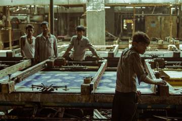 The film, called Machines, highlights the life of Jain, a factory worker in India. In the first 13 minutes of the film, there is no dialogue, with the camera captures the contrast between the giant machines, which guzzle up fabrics like robots, and then the workers who are no less mechanical in their working as they mix dyes, stoke furnaces and handle the fabrics.