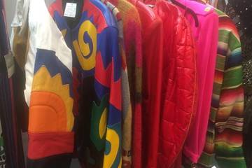 The 60s and 70s still dominated as the most popular decades but the usually ubiquitous 20s beaded dresses and satiny slips were conspicuously lacking for the most part. Gone too the dusty blushes and pastels associated with some earlier bygone eras, replaced by later 20th century’s bold clashing colors and patchwork aplenty.