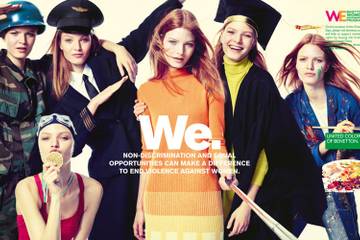 The orange dress features in a new Benetton campaign, ‘One woman for all. All Women for one,' and features images of three young women. Each execution shows multiple shots of one of the women dressed in a variety of outfits representing different careers, including a soldier, doctor, artist, student, athlete and mother. In the centre of each image is a shot of each woman wearing an orange dress to showcase equal opportunities for all women and men in the world.
