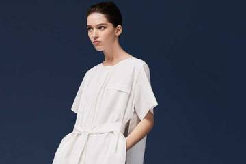 This resulted in a "clean and considered collection" which includes collapsing volumes and rectilinear silhouettes. A long-length shirt dress features soft double layered panels, whereas a men's technical jacket offers functional double pockets. The collection also features Japanese influences, seen in the square-cut proportions of a men’s top and a women’s coat featuring kimono-style sleeves. The collection consists of light fabrications of crisp cotton and technical polyester in a pared-back palette of sand and white.