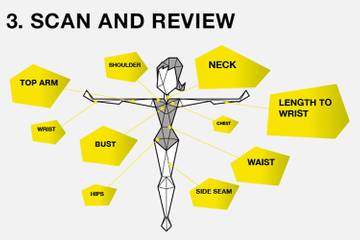 The user simply plugs the device into a computer, stands in front of the camera and rotates as directed, with the measurements provided within seconds to give an exact size, including everything a designer needs to create fully bespoke garments.