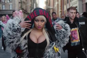 In a video promo, Minaj is shown wearing a fur coat emblazoned with the words The Bad Guy while F*ck You, Impostor appears on a shirt worn by Gucci Mane.