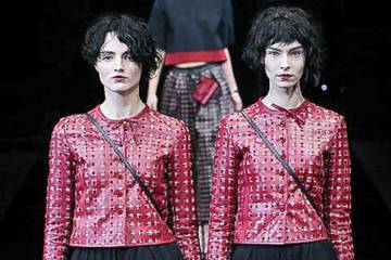 The fat effect is also going large, though Armani took a softer approach, offering just two short-sleeved blue and red dresses in fur and wool, which hung out from the frame down to the knee.