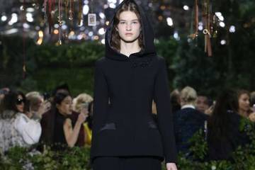 She slipped tarot and talismanic symbols throughout the collection with one black and white gown embroidered with the all the signs of the Zodiac. "Couture has to be magic and at the same time it has to be wearable," Chiuri said. That's why she combined all her ball gowns with low heels so their lucky owners can dance all night.
