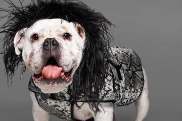To raise awareness of the auction and the fashion fundraiser, iconic photographer Rankin snapped a handful of Battersea’s four-legged residents, including Noah the eight-year-old Staffordshire Bull Terrier, in a Matthew Williamson coat, and Junior the five-year-old Greyhound, keeping it classy in a bespoke Philip Treacy collar.
