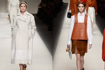 First up was a selection of white and cream ensembles, led by Victoria's Secret beauty Doutzen Kroes in a beautifully tailored high-waisted loose coat, after which the catwalk gave way to earthy tones dominated by browns, reds, camel and brick.