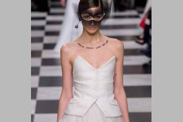 This week she wrote lines from Andre Breton's "Surrealist Manifesto" across her models' collar bones as part of a homage to Italian artist and proto-feminist Leonor Fini. Which was unfortunate, as critics quickly pointed out, because Breton was a notorious misogynist who Fini abhorred for writing that "the problem of woman is the most marvellous and disturbing problem in all the world".