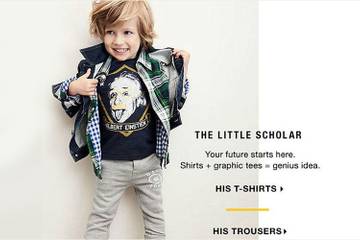 Gap's latest childrenswear advertising campaign, which sees a boy wearing a blue Einstein t-shirt with the slogan "The Little Scholar, your future starts here," and a girl in a pink logo sweater portrayed as "A Social Butterfly, the talk of the playground," seems shocking on several fronts. Firstly how an international retailer could so evidently let its creative and merchandising teams approve such blatantly stereotypical product categories, knowing they would be used for a campaign. And secondly, how these out-of-date descriptions of modern boys and girls seemed worthy of a catchphrase by its agency and superiors to be advertised and sent to its customers.