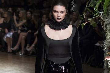 Black lipstick, white neck ruffles with pearls, tailored jackets over sweeping printed skirts -- British label Giles channelled gothic romance for its autumn/winter collection at London Fashion Week on Monday.