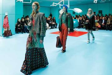 The first shock came when it started on time - almost unprecedented in fashion history. Then male and female models walked onto a runway amid operating tables under bright neon lights in the Gucci Hub, the brand's Milan headquarters, over the steady beeping of a heart monitoring machine.