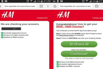 London - H&M is the latest brand caught up in a fraudulent promotional offer on popular messaging site WhatsApp.