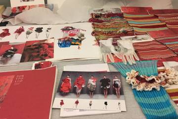 Parsons Festival is a 3-day annual event open to the public which showcases the graduating fashion students––all 500 of them this year, their work curated by theme over 3 floors of the school. Portfolios sit next to samples of textile development or custom made shoes, jewelry, sunglasses, handbags. The sheer magnitude of the student creativity on display is daunting. Garments hang from the rafters and graphic posters documenting society’s pressing issues of our time, which students regularly seek to address in their thesis collections, swing from walls and even lie across the floor.