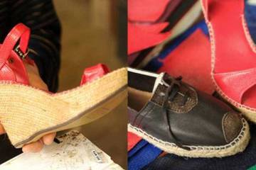 Most of his 10 shoemakers work in their homes turning out 20,000 pairs of espadrilles a year, which traditionally have soles made of jute. But he has used cork to sole the trout skin shoes, which come with heels in two heights.