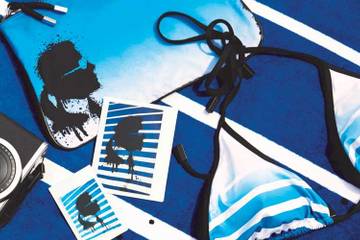 Inspired by iconic Rivieras and coastlines, the collection centres around a vibrant blue hue, offset by pops of crisp white and black. The men's offering includes a polo shirt and two styles of swim shorts, one fitted with a flat-belt waist, and the other inspired by classic '70s silhouettes. The women's offering features a bikini, a tunic and swim shorts. The collection is further complemented by a beach towel and a zip-top clutch.
