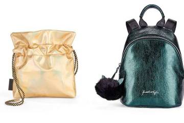 Among the notable pieces are a Sloane Sequin and Silver Sequin mini backpack, a Chelsea Black Faux Fur Pom Keychain.