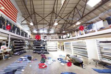 With a team of approximately 30 people or more, the lab is made up of craftspeople and seamstresses. The experience will also allow for viewers to click on hotspots that reveal insights into the craftsmanship of the product. “From industrial-sized washing machines to a laser machine to inflatable legs that jeans are fitted onto so they can be sanded for the perfect wear patterns, you can see it all as you explore the lab,” the website states of the 360° Experience.