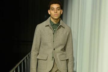 Oliver Spencer is going green for autumn/winter 2019, not just in his use of the hue for his autumnal colour palette that also included beige, navy and ochre, but for his use of eco wools at the heart of the collection.