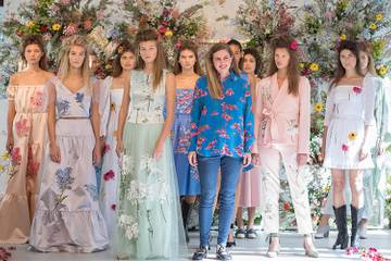 Floral installations lined the catwalk for Archer’s salon show and provided a beautiful backdrop for her summery collection of Prairie blooms which were embroidered on playful pastel-hued summer dresses, trouser suits and her signature long-flowing kimonos.