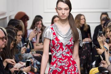 One the main highlights on Saturday was Simone Rocha's catwalk show. The Irish designer showed a collection which aimed to reflect the current uncertain political times, while offering women the armour and protection needed to continue battling on. The show opened with military inspired coats crafted from heavy fabrics such as velvet in darker, more somber colours, such a brown, khaki and black before moving into lighter colours and prints, such as primroses, and organza with embroidered flowers offering a more feminine take on traditional camouflage. The show notes featured the key words of inspiration for the collection: "armours, camouflage, foliage, peace, peace of mind, protection, feminine, famine, archivists, dirt and grit." The show also embraced diversity by featuring a range of models from all different ages.