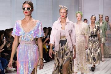 Nostalgic for a more innocent past was a reoccurring point of reference for designers showing at London Fashion Week, as London-based designer Mary Katrantzou also returned to her childhood memories for inspiration for Spring/Summer 2018. She took a number of playful elements, such as lego blocks, friendship bracelets, beads and marbles and repurposed them for the adult world.