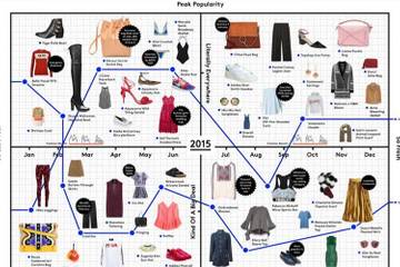 The 50 garments and accessories were then arranged by month and into a number of camps, including “Literally Everywhere,” “Kind of a Big Deal,” “So Fresh,” “So Last Year,” “Micro Trend,” and “Peak Popularity.”