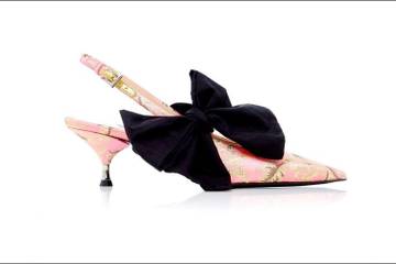 The essence of the collection is built upon Prada's kitten heel and sling-backs. The styles are modeled from heels shown at Prada's spring 2018 collection. Details include feminine bows, bright colors and exotic materials. Price points for the collection start at 490 dollars.