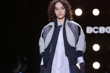 BCBG Max Azria set the tone for how layers would dominate this season. The first look they sent down the runway was a gunmetal ribbed lurex sweater, with a light gray asymmetrical wrap sweater vest, a light grey colored-blocked wool tweed vest with a patch pocket, a silver lurex seamless legging with slash detail, and cognac sandals with shearling detail.