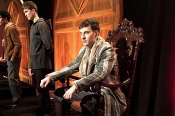 An anti-establishment attitude was only in evidence in the confrontational stare of the models and their cladding of tartan and windowpane plaid. Demure cardigans and buttoned-to-the- Adam’s apple shirts were crisp and polished. Kneelength shorts in grey herringbone worn with tights, lace-up shoes and a fur-collared, double-breasted coat even exuded the dandy aristocrat. Seated on ornate wooden chairs against wood panelling, these gentlepunks demonstrated their familiarity with cigar-scented libraries and hip whiskey bars, not squats and dive bars.