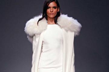 Jewel tones in ruby, amethyst, sapphire, and emerald made up this season’s color palette. Metallic gold and gunmetal elements were used to create an authentic, crown jewel resemblance. The brand also added tulle and manipulated fabric to create dramatic, feminine silhouettes.