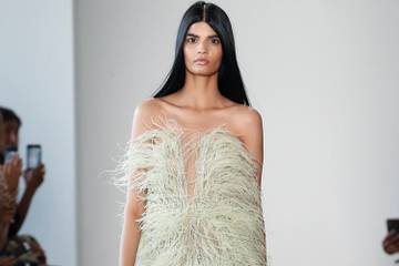 Despite her freshly minted inspiration every season, DeVos also knows how to please her core customer. Her usual luxurious details like 3D cut feather flowers, colorful ostrich feathers, sequins, and appliqués all bedazzled her creations.
