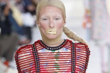 London - A woman with a leather wicker mask could barely see through the plastic covered eyes. Another had her mouth sewn shut a la Hannibal Lector in Silence of the Lambs, this time wearing a gold mask with holes cut out to see. A third was bound with her arm tightly sandwiched inside an elaborate blazer. Gagged, silenced and bound? This was no commentary on gender submission, this was Paris fashion week for Spring Summer 2019, as seen on the catwalks of New York designer Thom Browne.