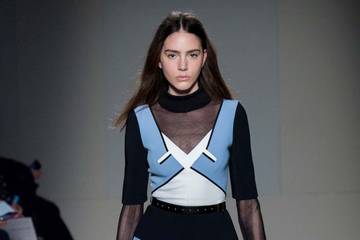Balmain looked to the eighties for its autumn winter collection, all power shoulders and nipped in waists. The art of power dressing is not novel to the house, but this season it came injected with clashing bright hues of orange, purple and magenta. Lace catsuits with flared legs and Mondrian-esque cage pieces provided the signature sex appeal, while models wore oversized earrings, throwing it back to the era where bigger was always better. The 80s was also the start of the supermodel era, so Balmain's casting was fittingly high profile with Kendall Jenner, Jourdan Dunn, Jessica Stam, Karlie Kloss, Lily Donaldson, Anna Ewers and Gigi Hadid all on the runway.