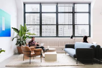 WeWork provides working space to professional workers who need a stable internet connection and deskspace to work, with desks for solo workers as well as private office spaces for groups. The space provides amenities such as coffee, printers, office supplies, mailing services and private phone booths, and works on a monthly renting basis.