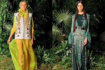 As for the clothes, the collection includes appliqués, feminine maxi dresses, and waists cinched with leather belts.