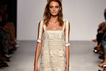 Yellow has also proven to be a major trending color this season, with canary tulle column dresses and yellow off the shoulder dresses being noticeable pieces from his collection. As usual, his signature embroidery was seen in his dresses and gowns.