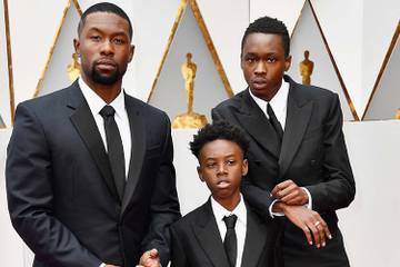 Janelle Monae, who featured in both "Moonlight" and "Hidden Figures," went for a major fashion moment. Her daring black Elie Saab gown featured a bodice with strategically placed embroidery -- reminiscent of Halle Berry's sheer burgundy Oscars dress, also from Elie Saab -- and a massive Marie Antoinette skirt. A golden headband completed the look.