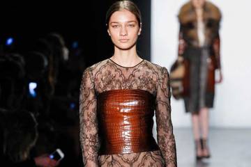 One of his signature pieces was a crocodile corset, daring to go where few, if any, designers have ever gone before. Basso's theme this season was the untamed woman, and the woman he must have been thinking of has a taste for luxury so untamed she will only settle for the most extremely well crafted fashions. This woman needs to look no further than Basso's line, which also included embroidered lace gowns, sleek knee-length dresses, and an ivory charmeuse jumpsuit.