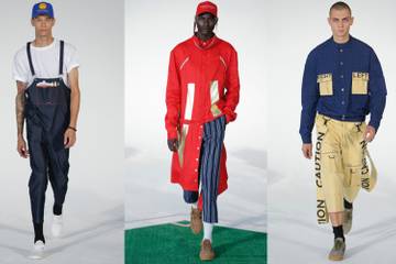 The result of a need for more joy in a world of political despair gave us utilitarian pieces like overall and jumpsuits, juxtaposed alongside slightly more avant garde pieces like trousers with suspenders reading CAUTION.