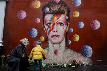 Fans -- including some in face paint inspired by his 1973 "Aladdin Sane" album cover -- left flowers beneath a mural of Bowie at his birthplace in Brixton, south London. Others gathered in tears outside his final home in New York.
