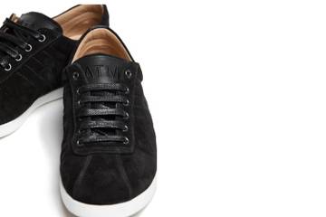 The new ATM shoe line which launches this month features both men's and women's styles including a slip on and a lace-up, and will be available in different materials such as denim, suede, metallic leather and python. The sneakers are made in Portugal and will be sold exclusively in both ATM stores and on atmcollection.com. Prices points for the shoes range from from 375 dollars to 395 dollars.