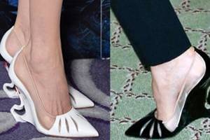 The cartoon-esque shoe has been worn by Jolie to global premiers of Disney's new film Maleficent, and Louboutin will sell the sculpted wedge design from October.