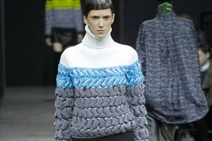 As his fashion freedom fights took to the catwalk, their silhouette was short and boxy. Tunics and shifts with military details came in wools, flannels and gingham checks. Key items focused primarily on the outerwear but also sweaters in horizontal rope stripes that had his signature sporty feel.
