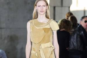 Loewe showed its first women's ready to wear collection under new creative director Jonathan Anderson, better known as J.W. Anderson. For a house best known for its leather goods, Loewe's fashion has always been less on the radar than other luxury houses. Anderson's new vision is a huge departure from previous designer Stuart Vevers, and chose to present a younger and more modern range. The silhouette was body skimming and asymmetric but there was also attention to detail, like patch-worked suede with raw edges as seen on dresses, tops and jackets.