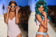The second Wildfox swimwear collection consists of floral and geometric printed swimsuits. Bikinis and shoes featured American and British flags. Gordon: “The collection is inspired by the American Girl that loves to travel.”